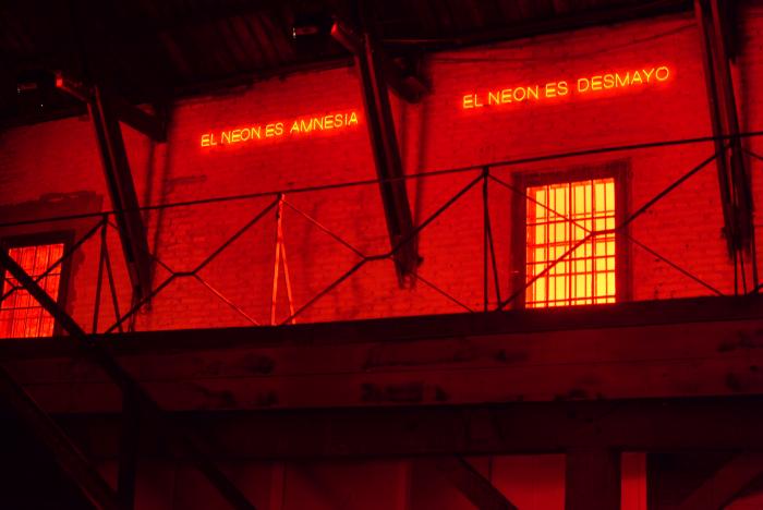 Gonzalo Díaz, ‘Rúbrica’ (Signature), neon texts, lighting and sound, site-specific installation at Matucana 100 Cultural Centre, Santiago de Chile, 2003. Image courtesy of Archivo Gonzalo Díaz.