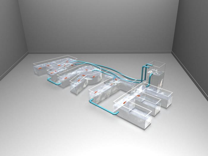 Gonzalo Díaz, ‘Muerte en Venecia’ (Death in Venice), Acrylic, oxygenation pump and water replacement, water, fish, 51st Venice Biennial, 2005. Image courtesy of Archivo Gozalo Díaz.