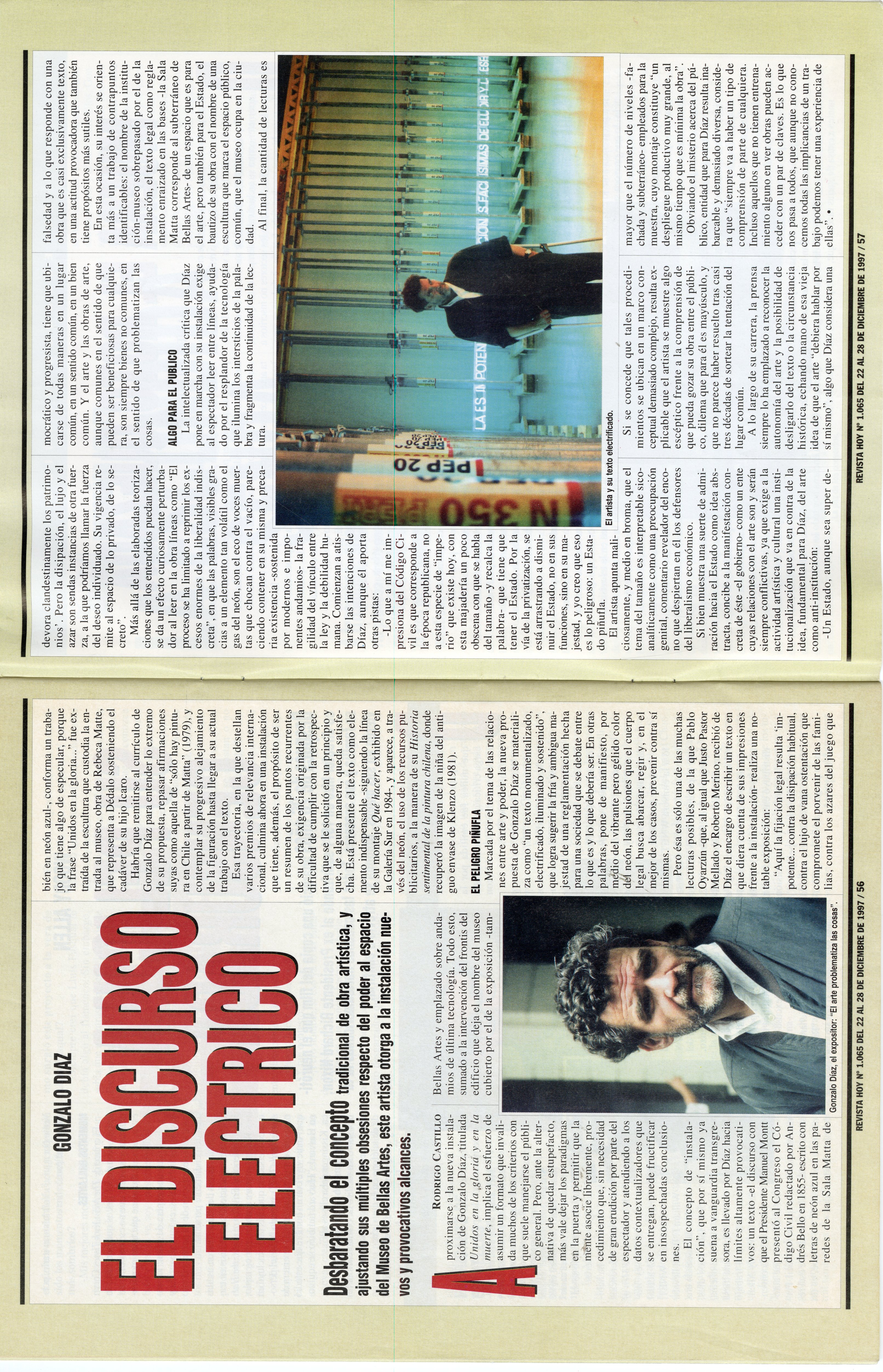 ‘The Electric Discourse’, Rodrigo Castillo’s article on Gonzalo Díaz’s ‘Unidos en la Gloria y en la Muerte’, ‘Hoy’ magazine, no. 1.065, 1997. Photo courtesy of Il Posto.