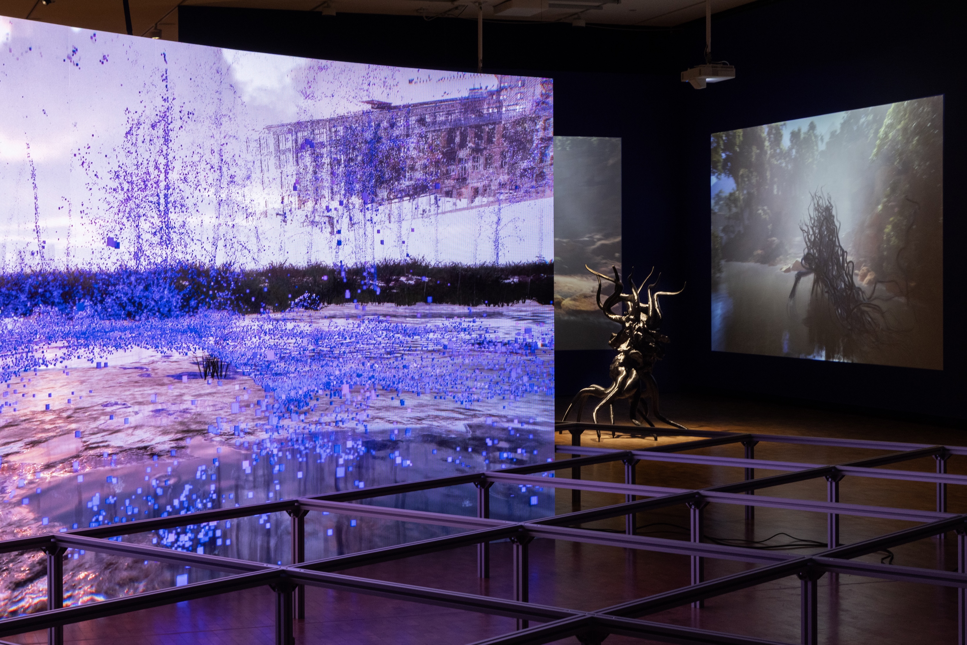 Set against this grounded sense of the present, the exhibition’s broader curatorial approach appears in a slightly different light. ‘Almost Unreal’ reflects a wider tendency to conceptualise technology as a theme rather than a material condition that structures how art is produced, circulated and perceived. Within this framing, technology can assume a spectacular role, an inclination heightened in biennial or triennial formats where the presentation of the new carries its own momentum. Such staging can gesture towards urgency while softening the harder questions around extraction, labour and the political climates in which these tools are developed. The exhibition acknowledges these pressures and at moments also visualises the anxieties they generate, yet its many trajectories tend to disperse rather than sustain critical examination.