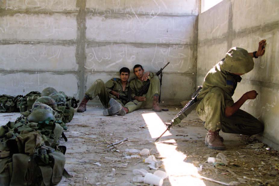 This becomes clear in both The Valley and in Trackers. The first series comprises 28 photographs of the Palestinian village Arab al-Shibli in Galilee. (Until 1948 this village was called Arab al-Sbaih; it changed its name after the Nakba, the Palestinian catastrophe of 1948.) Symptomatic of this series, which contains almost no depictions of people, is the photograph of a small area surrounded by a makeshift fence by the side of a road. History has it that this is where the inhabitants of Arab al-Sbaih and those of the nearby Jewish settlement Mas’ha met with a view to reconciliation after a violent conflict in the early 1940s.12 The very emptiness of this image, together with its ‘protagonist’, the fragile fence, alludes to a utopian dimension that seems virtually impossible to portray with human representatives. Any suggestion of a reconciliatory utopia is absent from Trackers, Shibli’s 85-part series about Palestinians of Bedouin descent who serve voluntarily in the Israeli army (IDF). In seven chapters Shibli unfurls an exploration of the nexus of problems around this small group, who primarily want to improve their standard of living, and in the process jeopardise their identity (or at least the identity ascribed to them by others). She works on an epic scale here, yet does not choose spectacular events or monstrosities as the subjects of her depictions, and does not make hasty moral judgements about the people portrayed. Instead, the hallmark of this series, as for most of Shibli’s works, is a ‘calm, patient persistence with these situations of reality’:13 the images render visible the circumstances in which this particular group lives and works, whilst at the same time reflecting on ‘the price a minority is forced to pay to the majority, maybe to be accepted, maybe to change its identity, maybe to survive or maybe all of this and more’.14